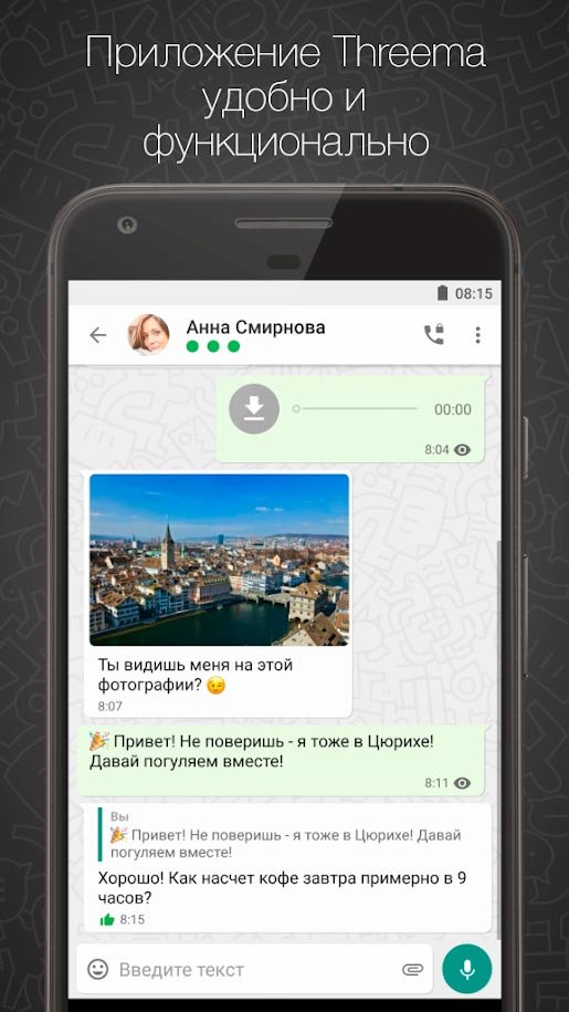 В наше время все хотят чувствовать себя в безопасности, но далеко не всем это доступно. Возможно, вы еще никогда не слышали о таком популярном и самом безопасном мессенджере как Threema, а ведь о нем знают миллионы пользователей. Спешите попробовать ощутить самостоятельно все его функции и возможности на себе. Он будет защищать всю вашу переписку от проникновения хакеров и взломов, а также позволить осуществлять полностью анонимное общение с нужными вам пользователями. Даже правительственные службы не получат доступа к тому, что будет храниться внутри этого приложения. Естественно, о таком наборе функций мечтает каждый обладатель телефона, ведь в последнее время очень трудно чувствовать себя в безопасности. Даже ваши голосовые звонки будут зашифрованными и никто не получит к ним доступа. Самый современный мессенджер Threema обладает красивым дизайном, удобным интерфейсом и всему необходимыми для переписки и общения службами.