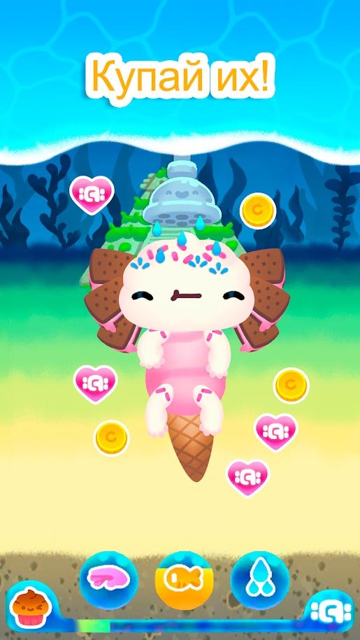 Огромное количество самых разнообразных настроек станет доступно для изменения внешнего вида персонажа. Сделайте его самой уникальной личностью и следите за взрослением. Путешествуйте по водному пространству и покупайте ему игрушки или дополнительные предметы. Собирайте для этого монетки в Axolochi Аксолочи и наслаждайтесь качеством графического движка. Вскоре у вас может появиться целая семья из таких героев. Все это просто замечательно и будет очень весело участвовать в таком тамагоче.