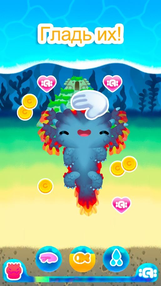 Возьмите себе на воспитание забавного малыша и следите за тем, как он будет быстро расти и развиваться. Ему предстоит пройти через несколько этапов эволюции, чтобы стать полноценным. Заведите себе малыша в Axolochi Аксолочи и наслаждайтесь временем, которое сможете проводить вместе с ним. Обеспечивайте персонажа заботой и окружайте любовью. Он сможет исследовать подводное королевство и там обязательно найдет сокровища, спрятанные древними существами. Дождитесь момента, когда он станет совсем большим, и раскройте все секреты этого королевства.