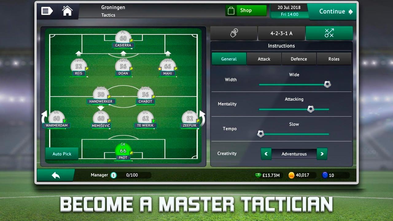 Каждый может привести собственный футбольный клуб к победе и сделать это можно очень быстро. Наслаждайтесь захватывающим геймплеем и высококачественной графикой. Участвуйте в разных чемпионатах и управляйте лучшими футболистами. Самостоятельно в Soccer Manager 2019 каждый может проводить трансферы и принимать в команду новеньких, среди которых будут и легенды. Начинайте потихоньку подниматься с самой последней лиг и продвигайтесь еще дальше.