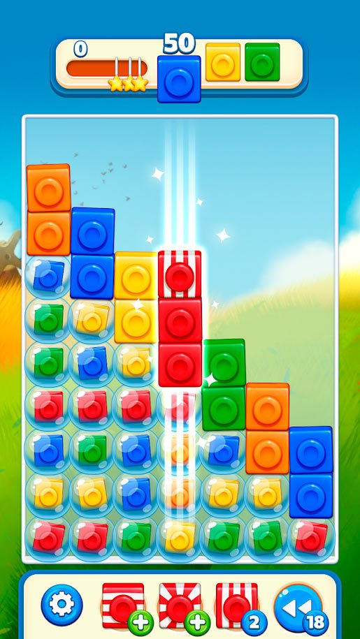Уникализированный игровой процесс головоломки, с которой справиться можно сразу после первого запуска. Все что предстоит делать игроку, это простейшими касаниями экрана переставлять разноцветные кирпичики и очищать игровое пространство. Таким образом, можно будет очень быстро завершить кучу уровней и сделать верные комбинации. Составляйте полные линии и завершайте с успехом испытания. Важно думать над своим каждый следующим движением, чтобы не ошибаться и не нарушать верную цепочку. Очищаться с поля в BRIX! Block Blast будет не меньше четырех одинаковых кирпичей, а если их будет больше, то вас ждут бонусы. Использовав их, будет еще проще завершить испытание и перейти к следующему.
