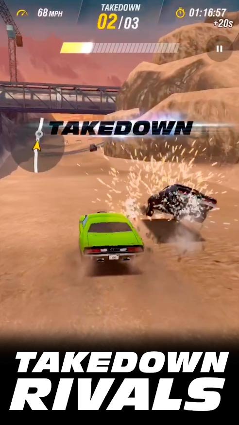 Fast & Furious Takedown – крутая гонка по оригинальной истории Форсажа, чтобы почувствовать себя героем этой франшизы. Отправляйтесь в сюжетную компанию и пройдите сотни уровней в красочном исполнении.