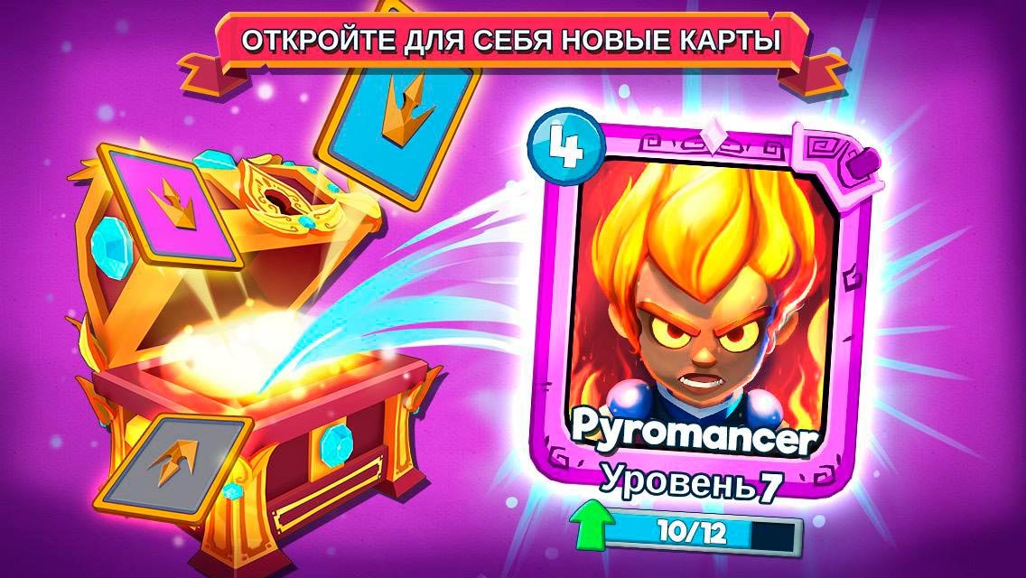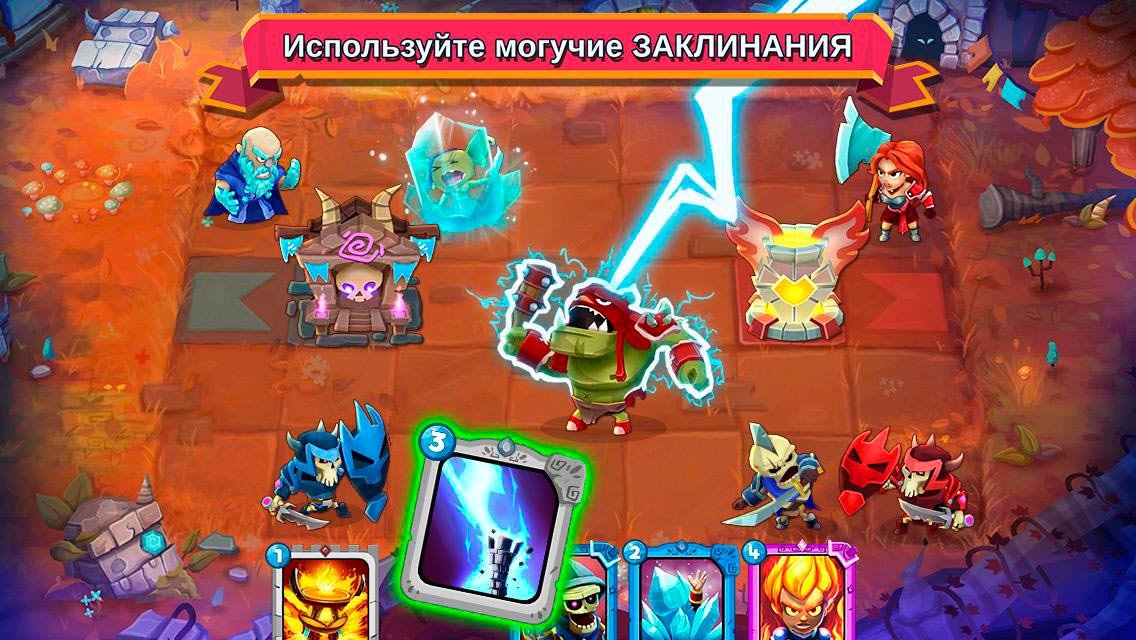 Начинайте прямо сейчас собирать массу потрясающих карточек и придумайте идеальную колоду, способную победить у игроков по всему миру. Сражайтесь с реальными игроками через многопользовательский режим и бросайте вызов даже своим друзьям. Ваши битвы пройдут на разных аренах эпического стиля и там можно выйти на первые места в системе глобального рейтинга. Используйте пошаговую стратегию и проверяйте ее активность на деле. Есть десять категорий карточек, но эпические и легендарные являются самыми сильными. Не позволяйте врагам в Clash Tactics нападать на ваши башни и защищайте их. Наносите сокрушительные удары и не бойтесь пользоваться магией.
