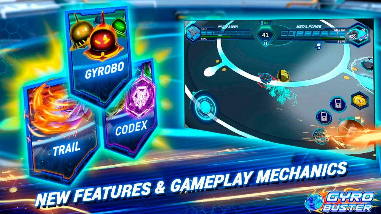 Ключевой особенностью такого жанра и игрового процесса является затягивающий геймплей и футуристическая атмосфера. Вам необходимо будет обойти невероятное количество препятствий и постараться добраться как можно дальше в процессе. Сражайтесь против игроков по всему миру и постарайтесь стать самым великим. Раскручивайте свой спиннер и отправляйте его в космическое пространство. Можете вызвать на дуэль в Gyro Buster своих друзей через режим реального времени или найти случайного соперника. Будьте уверены, что легко точно не будет, потому что это напряженные битвы. Можете испытать свои способности в режиме одиночном и сразиться против искусственного интеллекта. Существует три разнообразных уровня сложности и в каждом игроку будет невероятно тяжело справиться с задачами.
