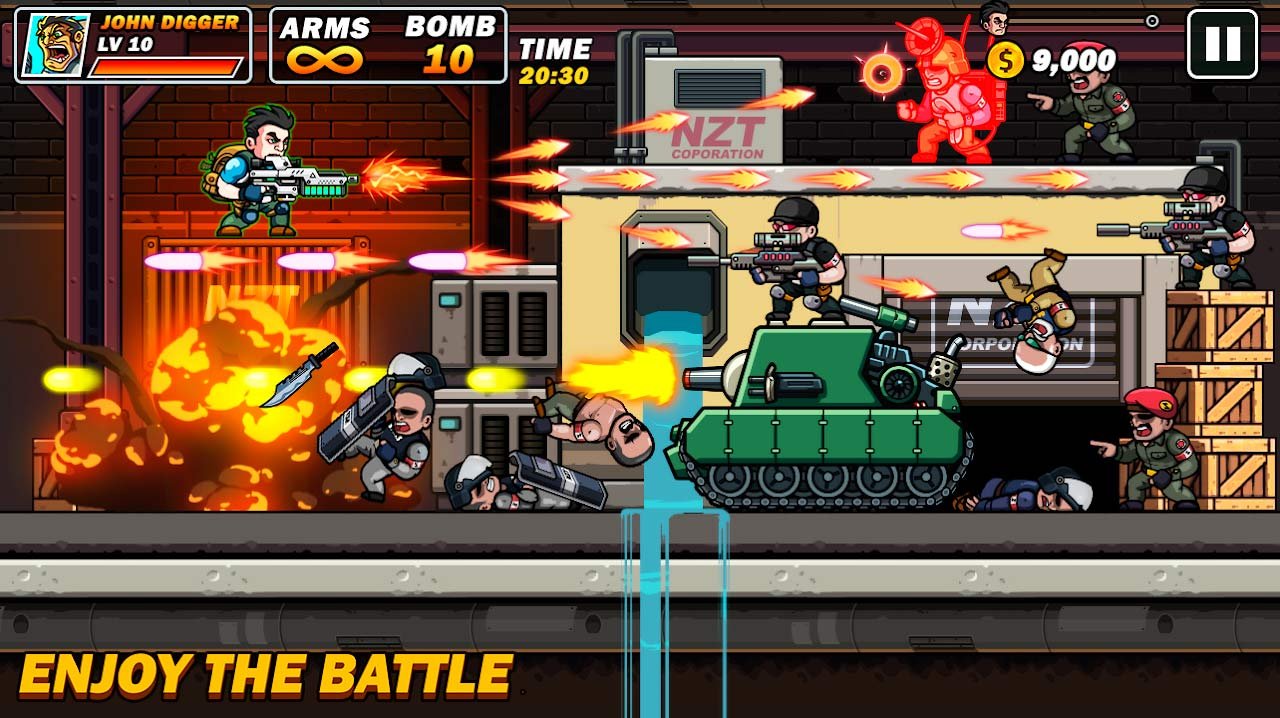 Потрясающий шутер, в котором более сотни уровней и вам предстоит сосредоточиться на уничтожении этих врагов. Попытайтесь спасти этот мир и закончить глобальное задание. Выбирайте, за какого командира вы пройдете свою историю освобождения мира и оснащайте его мощным оружием. Игроков в Metal Mercenary - 2D Platform Action Shooter будут ждать самые захватывающие локации и на них есть разные враги. Проходите миссии и прокачивайте навыки своего персонажа. Есть множество целей, которые предстоит выполнить, а по пути нужно собрать как можно больше золота, ведь за него можно будет прокачать вооружение и опыт своего бойца. В конце этапов сталкивайтесь с эпическими Боссами и уничтожайте их мощными взрывами. Выжить в таком напряженном боевике будет невероятно сложно.