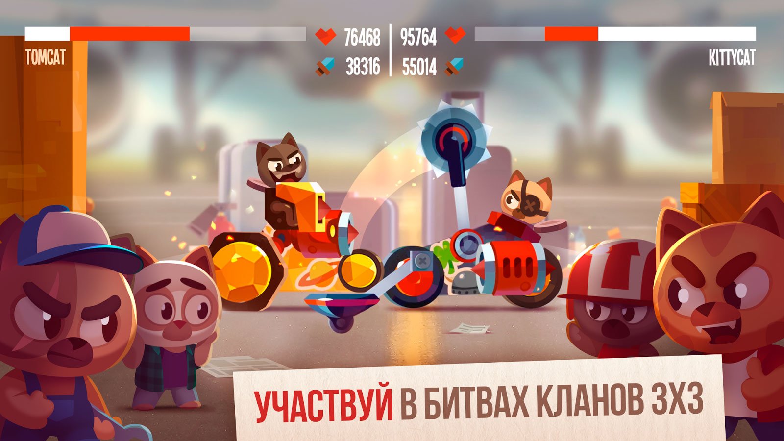 CATS: Crash Arena Turbo Stars – это веселые сражение милых кошек на огромных роботах. Выходите на арену и уничтожьте своего соперника с помощью широкого выбора оружия. Постройте собственную машину для убийства, и никто не сможет вам победить. Десятки миллионов игроков со всего мира готовы к соревнованию за чемпионский титул в этой удивительной игре, так что приготовьтесь к нешуточному противостоянию.