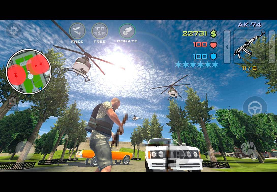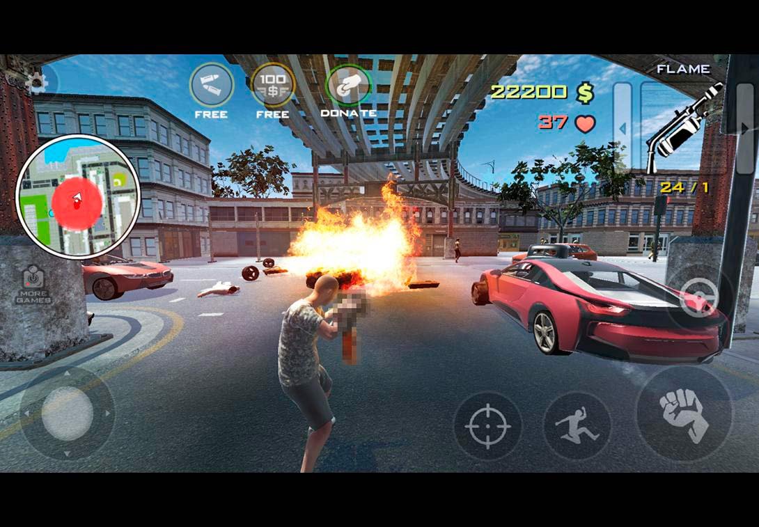 Познакомьтесь с увлекательной и оригинальной историей про криминальную жизнь героя, который является агентом из ЦРУ. Ему поручили отправиться в город и там попытаться развязать войну между двумя бандами, чтобы взбодрить ситуацию в местности. Даже если это получится, все равно ситуация вскоре выйдет из-под контроля и начнется более масштабное событие, в котором правительство начнет воевать против мирных жителей и привести это может только к апокалипсису. Mad Town Demolition полностью уникальная история, с которой игрокам предстоит познакомиться впервые на своих мобильных. У такого жанра как ГТА полно поклонников и все они заждались новой возможности сыграть в подобный экшен. Почувствуйте данную свободу действий, воруйте машины, стреляйте по соперникам и открыто перемещайтесь по местности.