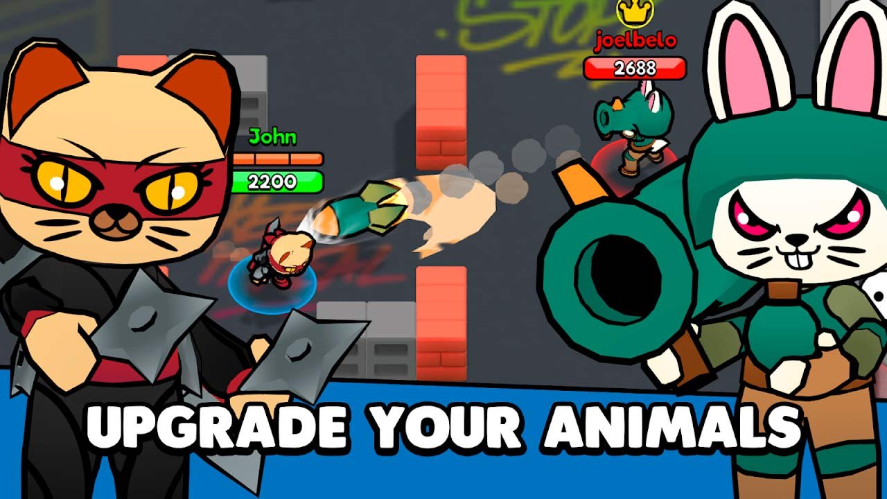 Пришло время принять участие в сумасшедших и веселых битвах, режима реального времени. Вас ждет огромное количество потрясающих арен, на которых пройдут схватки и множество зверей, участвующих в них. Игрок может выбрать себе любое животное, которое мутировало до разумного существа и его необходимо оснастить полным боекомплектом. Разблокируйте в процессе продвижения по Brawling Animals как можно больше зверей и узнайте про их характеристики и суперспособности. Обновляйте благодаря монеткам способности каждого и постарайтесь стать настоящим лидером. Заведите себе команду из таких профессионалов и ежедневно доказывайте, что только вы достойны звания лучшего чемпиона. Участвуйте в интересных квестах, в качестве награды за прохождение которых можно будет получить легендарного зверя.