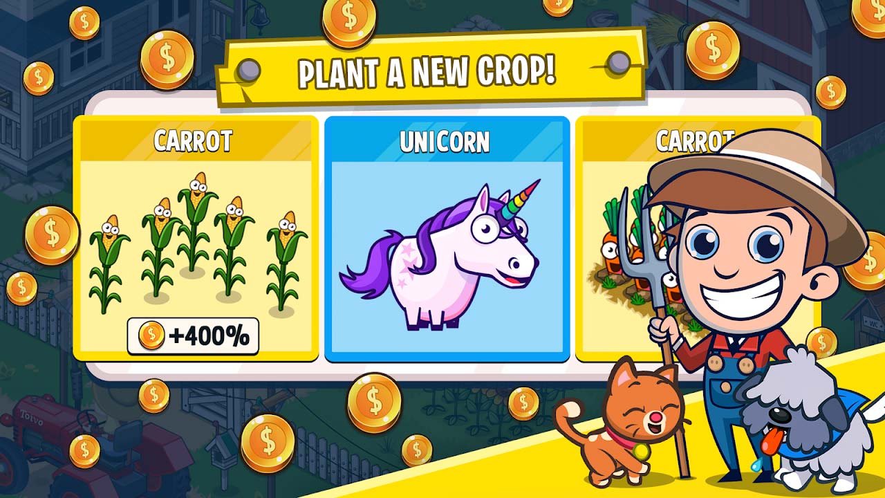 Idle Farming Empire – один из самых прибыльных фермеров, в котором можно построить масштабный бизнес и получать прибыль ежедневно, развиваясь до невероятных размеров