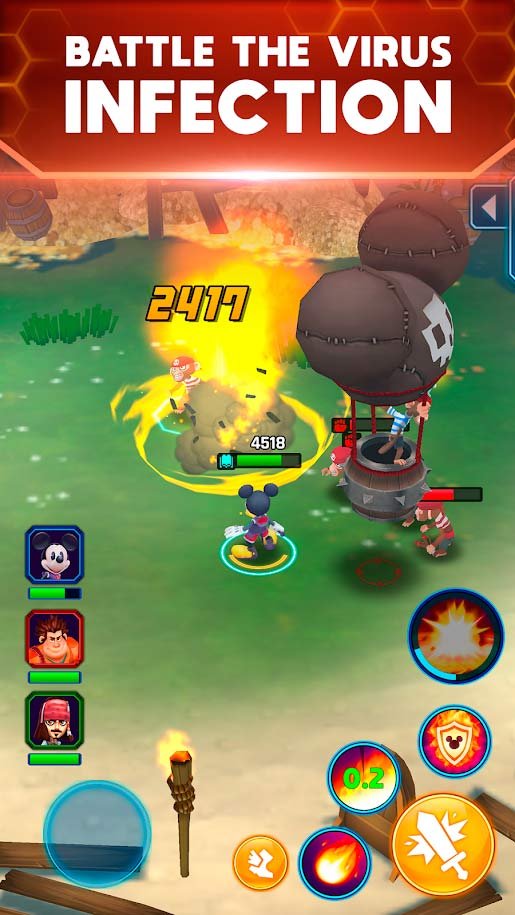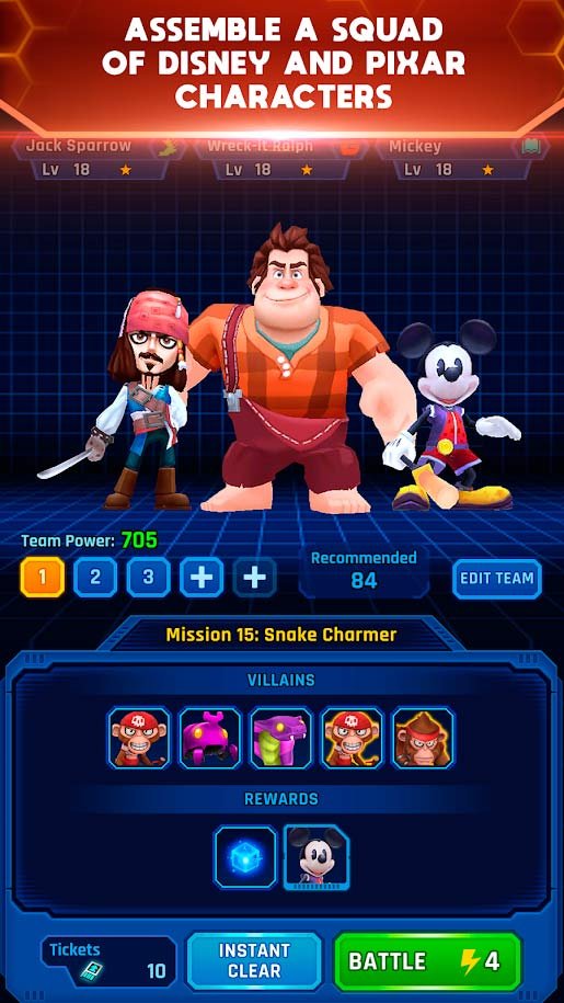 Очень долго крупномасштабное королевство находилось в полной безопасности, но в один момент вирус под названием Синтаксис начал заражать все в округе. Вам же необходимо будет отбиваться от вражеского нападения и для этого подойдут абсолютно любые способы и методы. В Disney Epic Quest собрано множество персонажей от компании Диснея и Пиксара. Сражайтесь с инфекцией и получайте как можно больше новых героев в собственную коллекцию. Микки Маус и его друзья, персонажи из Карибского моря, История игрушек и много других мультсериалов подарит вам новые возможности. Собирайте самую огромную команду из мультяшных героев и пройдите компанию с острым сюжетом. Прогрессируйте и продвигайтесь как можно дальше по сюжетной компании. Все это будет выглядеть эпически.