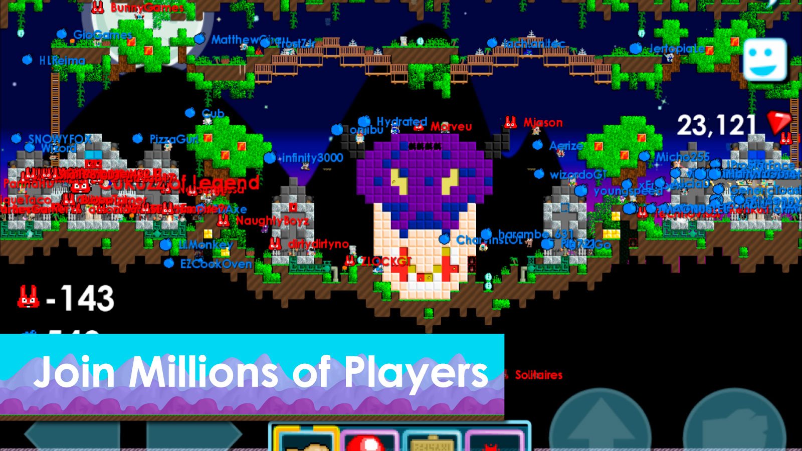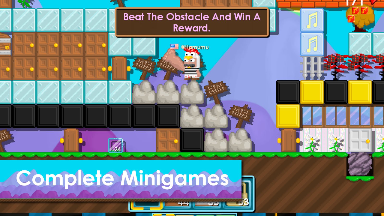 Вас ждут увлекательные приключения, представленные в простом управлении и пиксельной графики, соответствующей ретро игрушкам. Попробуйте скачать Growtopia на андроид и узнайте достаточно нового. Игрок сможет собирать массу предметов, участвуя в исследованиях разнообразных локаций со своими уникальными пейзажами. Более того, чтобы не заскучать за своим приключением можно будет воспользоваться возможностями чата и общаться с другими игроками, обитающими по всему миру. Не забывайте никогда о бдительности и внимательности, ведь в любой момент ваши вещи могут украсть другие игроки, и они будут пытаться делать это постоянно. Таким образом, нужно будет не просто найти как можно больше вещей, но и защитить их.