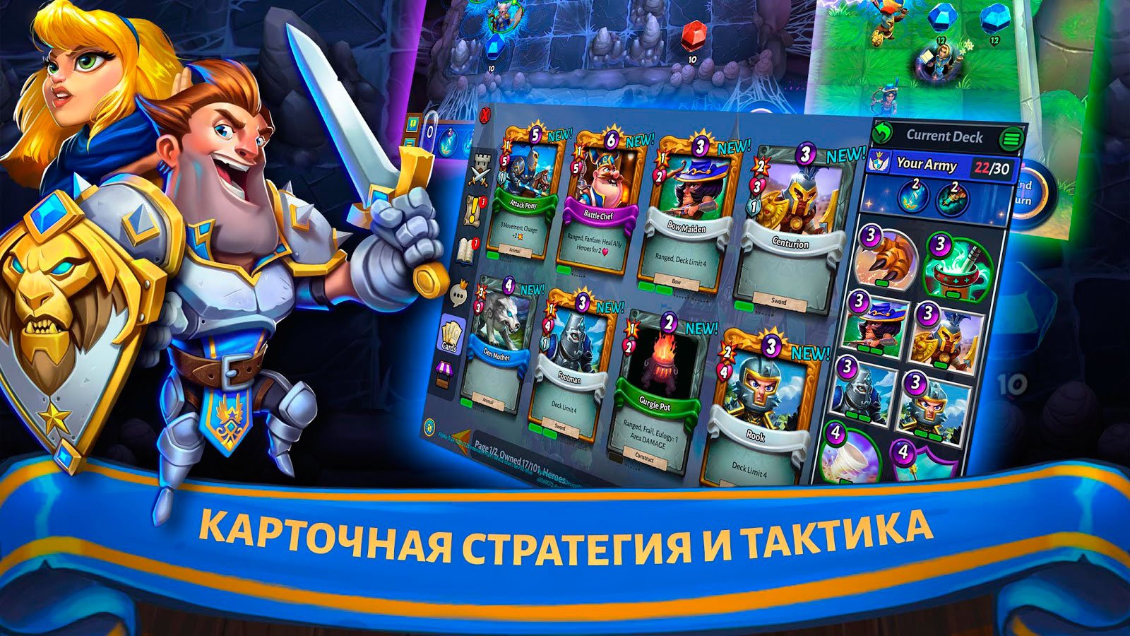 Очень эффектно выглядят битвы в режиме реального времени, но не менее интересна компания автономного режима. Игра в онлайн игре можно будет встречаться одновременно с несколькими участниками игрового процесса на одной арене, и принять участие в пошаговых битвах. Исследуйте огромный фантастический мир и выбирайте свой путь к победе. Каждый день и праздники проходят уникальные события, в которых можно будет выиграть легендарную карту, а о такой мечтают миллионы игроков. Постоянно экспериментируйте с комбинациями и выбирайте свой могущественный путь до вершины. Вас ждет огромное число уникальных фракций и сотни героев со своими способностями.Ответы на часто задаваемые вопросы
