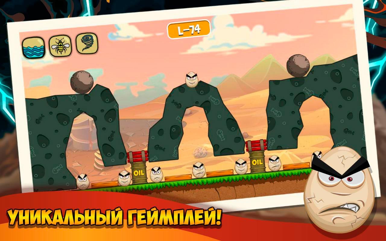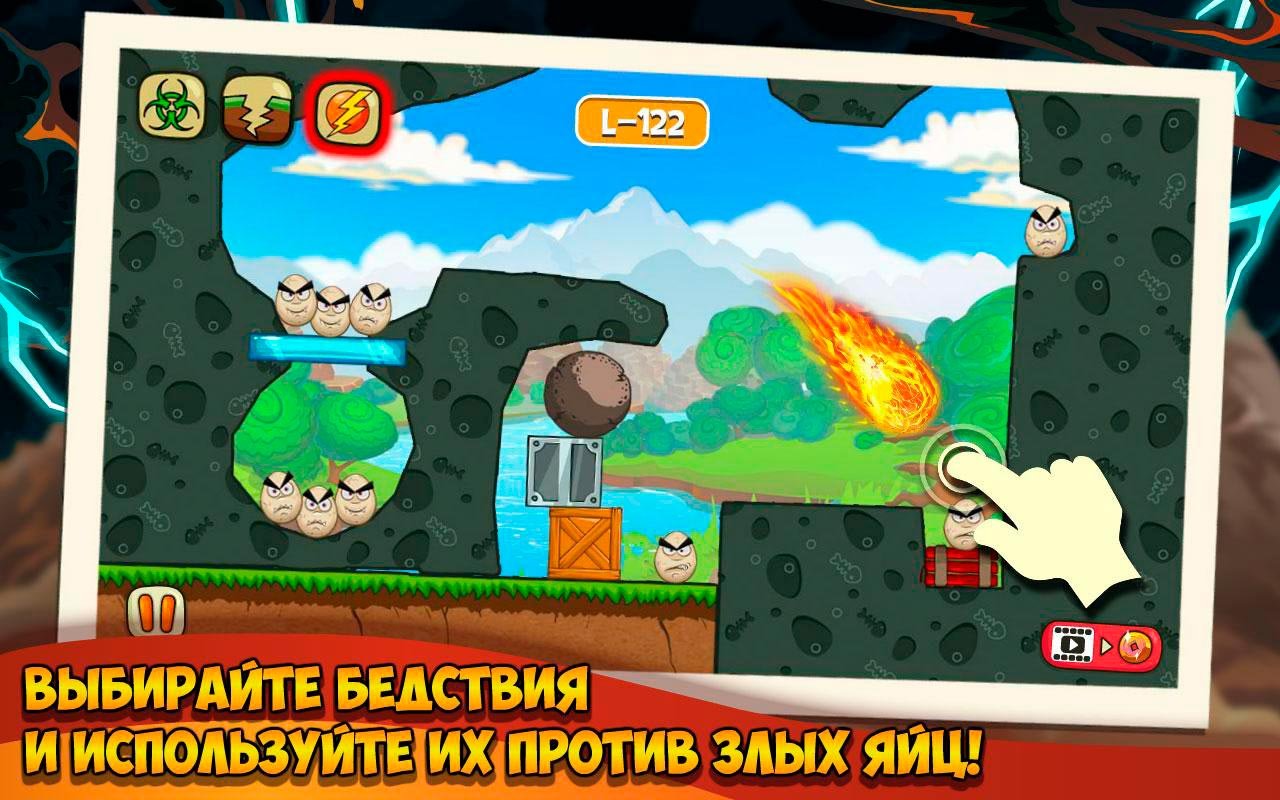 Disaster Will Strike – это веселая головоломка, в которой необходимо будет разрушать огромное количество забавных яиц. Создавайте своими руками разные стихийные бедствия и с их помощью разрушайте армии.