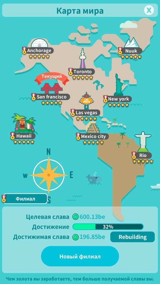 Начните зарабатывать свои деньги прямо сейчас и улучшайте систему. Это будет особенный бизнес, участвовать в котором невероятно весело. Управляйте ресторанами по всему городу и извлекайте огромное количество прибыли. Инвестируйте только в правильное дело и получайте заслуженно заработанные монетки. Постоянно увеличивайте свой уровень мастерства и оптимизируйте работу системы. В этом красивом городе под названием Фуудпиа можно открыть множество новых заведений, но на все потребуется невероятное количество времени. В Foodpia Tycoon можно получить отличную репутацию и превзойти других пользователей. Пусть в ваших кафе и ресторанах трудятся только самые лучшие повара и работники, способные только улучшить питание. Здесь за всем нужно следить как в реальности.