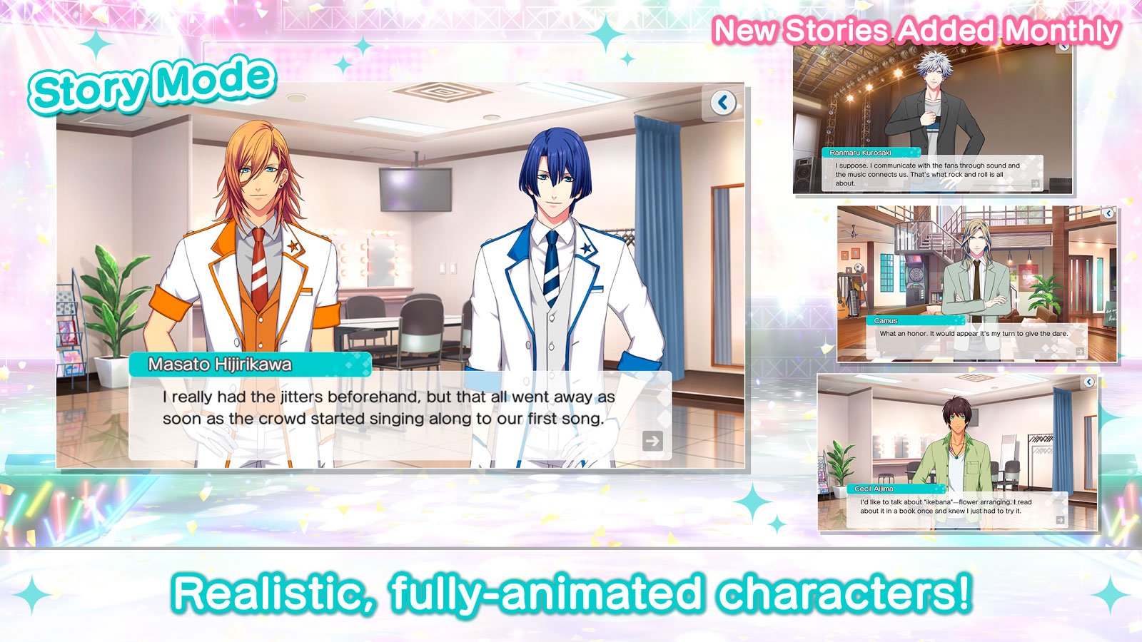 Игроку, который смог скачать Utano Princesama: Shining Live на андроид нужно будет постоянно сопровождать этих персонажей, и помогать им во всех делах не только на сцене, но и за ее пределами. Все это доставит массу приятных впечатлений и откроет удивительные факты, которые касаются их истории и знаменитой жизни. Поддерживайте героев во всем и тогда они смогут пробиться до вершины успеха и станут известными во всем мире. Слушайте свои любимые композиции вместе с этой игрой и исполняйте совершенные танцевальные приемы.