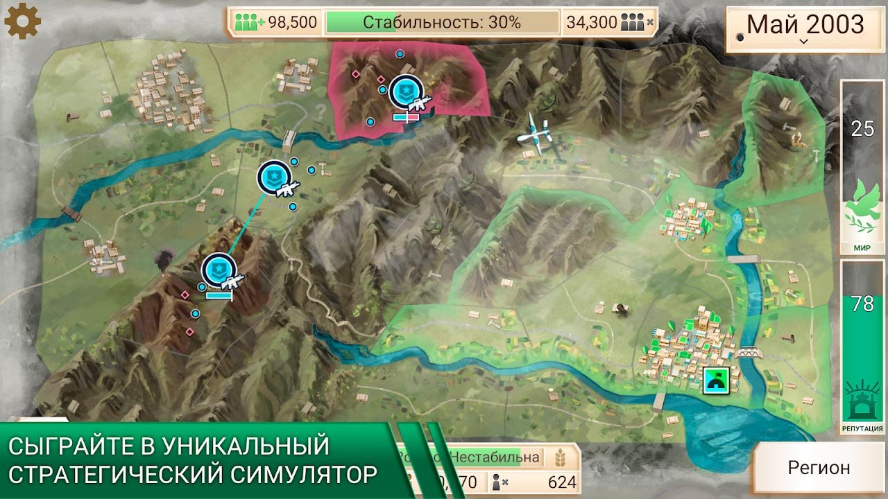 Rebel Inc – это уникальное игровое приложение, в котором пользователям предстоит попытаться остановить военный мятеж и наступление террористов. Управлять миром в такой ситуации невероятно сложно и скоро вы это почувствуете.