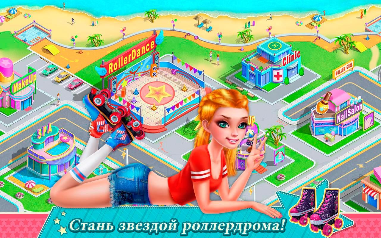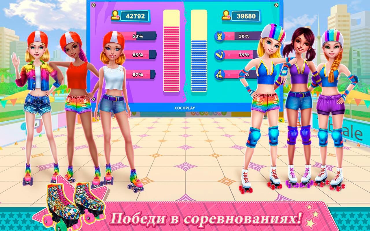 Отправляйся на самый лучший в мире роллердром, чтобы испытать совершенно новые ощущения. Изучай танцевальные движения на роликах и воспроизводи все это на показ. Впереди игроков ожидает совершенно новое соревнование, и оно масштабно. Значит, необходимо будет тщательно подготовиться, чтобы пробиться в лидеры и получить главный приз. Естественно там будет сидеть жюри, которое даст оценку вашему танцу на роликах. Научитесь новым движениям, приемам и трюкам, чтобы удивить публику и получить лучшие баллы. Кроме того, стоит позаботиться о собственном внешнем стиле, ведь настоящая роллер должна прекрасно выглядеть, чтобы очаровать всех вокруг. Измени прическу в Девчонки на роликах – Танцы на колесах и поменяй наряды. Тогда в результате можно стать одной из самых известных танцовщиц в данном стиле.