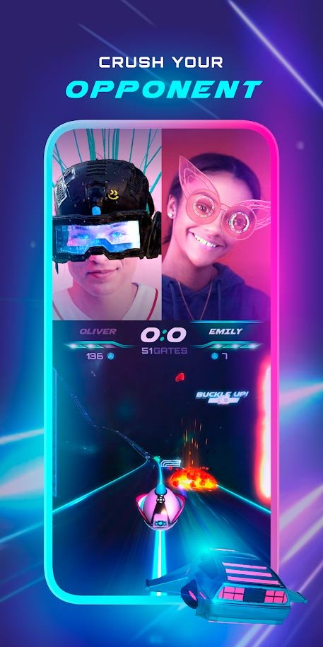Пришло время заглянуть в будущее мобильных и социальных игр. Если вы станете участником данного приключения, то сможете получить массу новых впечатлений. Здесь каждому предлагается стать гонщиком и победить друзей или случайных соперников. Кроме того, во время участия в проекте можно заводить новые знакомства или свободно общаться с оппонентами. Все это происходит только в режиме реального времени и во время прохождения очередного соревнования. Добавляйте в Hyperspeed - Race with Friends свое лицо и приступайте к гонкам. Вас ожидает напряженная конкуренция с лучшими в этом виде. Попытайтесь приложить максимум усилий, чтобы обогнать их и забрать главный приз. С помощью усилителей и дополнительных предметов вы сможете увеличить динамичный темп и ускориться.