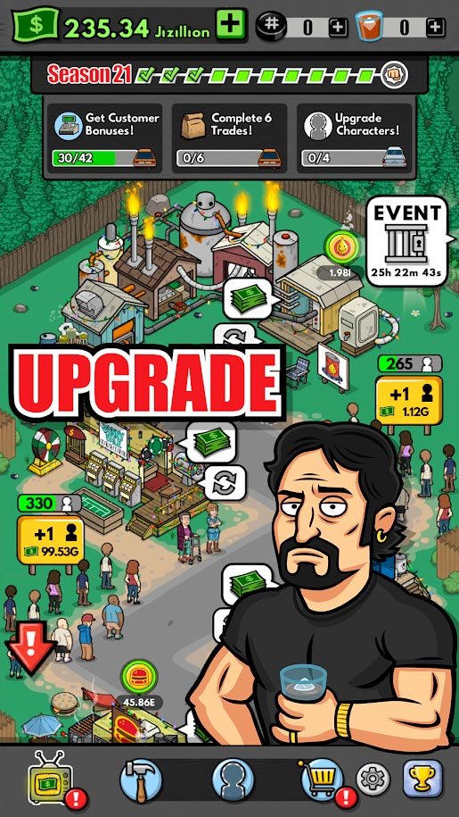 Стань участником лучшего смешного шоу прямо сейчас, сыграв в него с помощью своего смартфона. Тебе предстоит произвести реконструкцию нового предприятия и получать первых клиентов. Они начнут приносить прибыль в твою казну. Собирайте специальные карточки, выполняйте дополнительные задания и продвигайтесь еще дальше в прогрессе. Присутствуют особенные комплексные проблемы, разобраться с которыми будет невероятно трудно. Если вы встретитесь с боссом, то можете пострадать. Тогда придется заново строить парк и продвигаться. Абсолютно новая возможность в Trailer Park Boys: Greasy Money заключается в социальных функциях, ведь теперь друзья из сетей будут рядом с вами в любой момент.