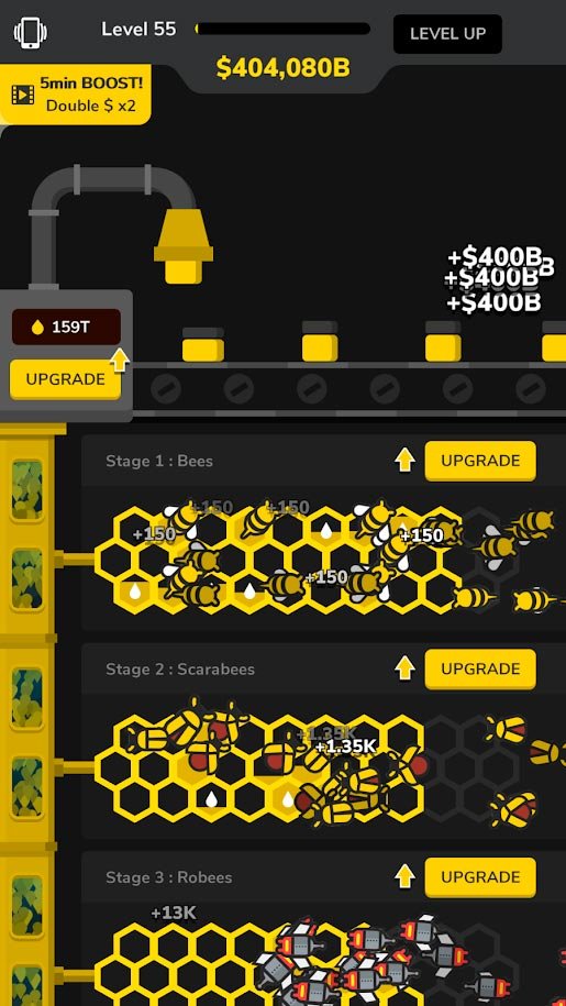 Вы впервые можете поиграть в кликер, которые расскажет о жизни пчел и даже позволит поучаствовать в ней. Это будет достаточно весело и особенно увлекательно. Научитесь управлению свой фабрикой по производству огромного количества меда и возможно вскоре это сделает вас самым настоящим миллионером. Развивайтесь с каждым днем еще сильнее и попытайтесь получить во владение еще больше меда, а также задумайтесь над выгодной продажей. Существует более сотни видов разных пчел, которых необходимо будет изучить в Пчелиная фабрика. Каждая пара работает по-своему, а игроку, как хозяину необходимо все это учитывать. Продай больше меда и на вырученные средства обновляй пчелиный рой, а также докупай улучшенное оборудование. Нужно всегда идти в ногу со временем и иметь достаточно ресурсов, чтобы извлекать больше денег и обслуживать больше клиентов.