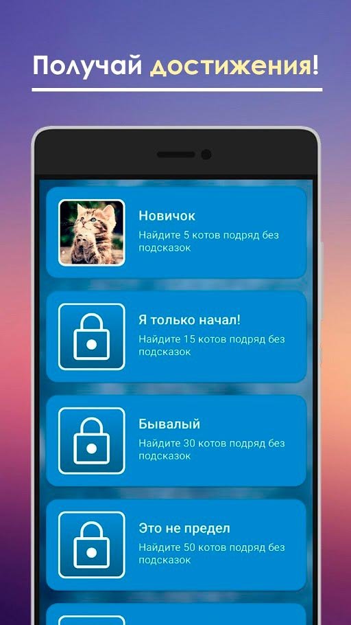 В данной головоломке собрано огромное количество головоломок, в которых необходимо будет сконцентрироваться и заняться поисками котика. Как только вы заметите эту хитрую мордочку, нужно просто нажать на нее и он появится. Таким образом продвигается процесс в Найди кота. Кому-то может показаться, что это будет невероятно просто и легко, но на самом деле все гораздо тяжелее. Чем дальше пользователь зайдет, тем труднее отыскать милую мордаху. Проверьте, насколько сильна ваша внимательность и отыщите все цели, заданные перед началом игрового процесса. Эта головоломка абсолютно бесплатная и в ней нет никакой рекламы. Наслаждайтесь игровым процессом огромное количество времени и постоянно улучшайтесь. К тому же эта полезная головоломка доступна для маленьких и взрослых. Очень интересно наслаждаться таким приложением, тем более все фотографии настоящие.