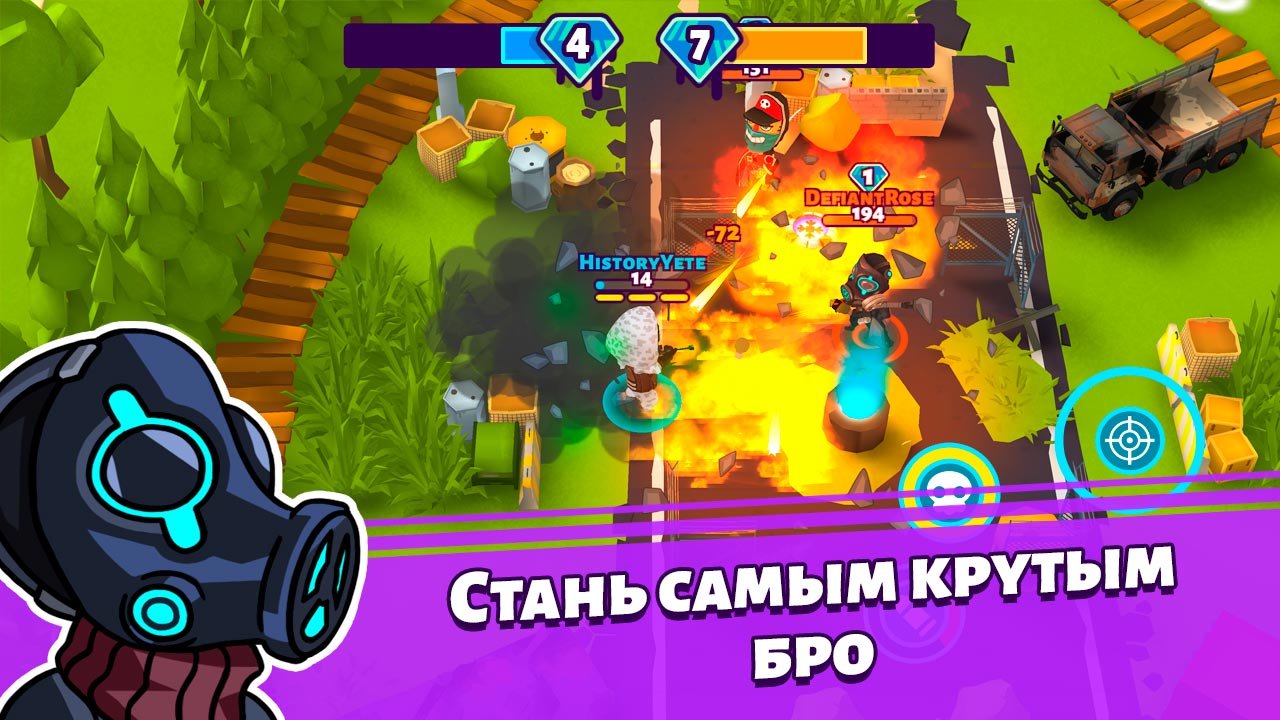 Динамичные поединки между игроками по всему миру точно не позволят заскучать за этой стрелялкой. Здесь постоянно что-то происходит, а каждое противостояние будет невероятно быстрым. Успевайте стрелять по врагам и выживайте. Объединяйтесь вместе с друзьями в команду и выступайте против таких же вражеских группировок. Собирайте уникальных персонажей и даже военную технику. У каждого из задействованных героев есть свои уникальные характеристики, и они действительно помогут в ходе сражений. В Bro Guns есть несколько режимов игры, такие как выживание, смертельные поединки, сборы ресурсов и командный захват точки. Улучшайте навыки своих персонажей и увеличивайте их боевой опыт. Только это поможет добиться успеха и взойти на лидирующие позиции.