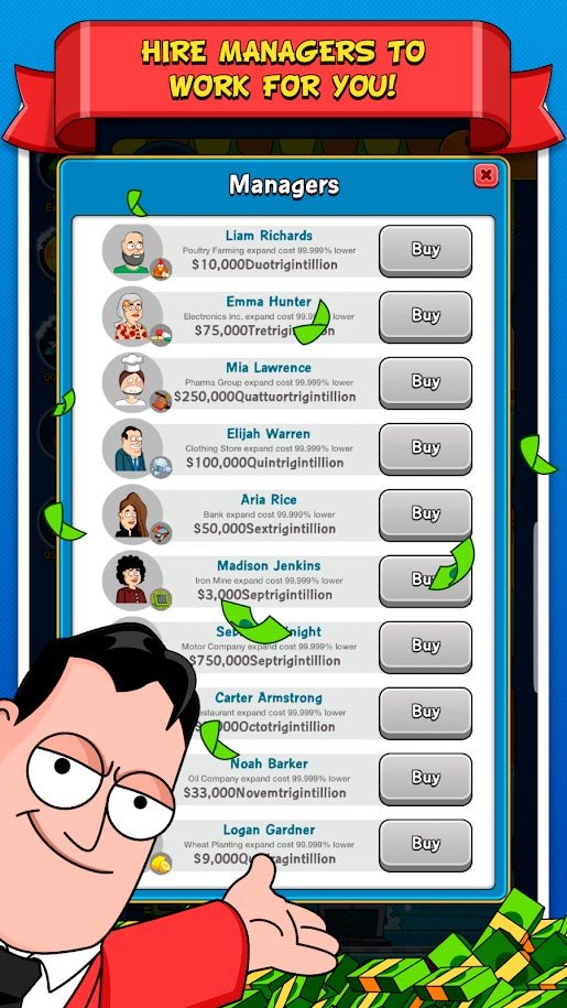 Сделай первый шаг на пути к миллионам богатства и заработай первые деньги, чтобы после инвестировать их в еще более выгодное дело. Сжимайте лимонный сок ежедневно и увеличивайте прибыль. Чтобы добиться лучших результатов пользователь сможет накопить деньги на разведении кур, на продаже яиц, на стройках и еще куча способов существует в этом кликере, но каждый способен принести невероятное количество денег. Выполняйте множество заданий и кликайте по экрану все быстрее, увеличивая темп. Чтобы добиться первого миллиона нужно усердно трудиться и следить за своим бизнесом в The Big Capitalist 3. Третья часть получила заметные улучшения и обновления, а также займет куда больше времени. Привлекайте каждый день новых инвесторов и заполучите их доверие.