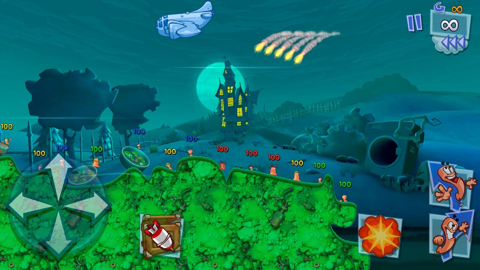 Каждый уважающий себя пользователь мобильного телефона в мире точно знает эту игру про червячков. Они постоянно участвуют в сражениях и крутых битвах, демонстрируя мощь своих воинов и оригинальность тактики. Призывайте на битву величайших червячков и используйте их для выполнения новых миссий. Многие не знают, что могут сыграть в эту легенду на современном смартфоне, но это действительно так. Задачи игроков очень простые в понимании. Каждый должен будет выбрать себе крутых персонажей из Worms 3 и создать команду. Потом начнутся сражения в режиме реального времени против друга или случайного соперника. Нужно научиться прятаться, пользоваться любым видом оружия, правильно рассчитывать полет снарядов и еще много всего интересного.