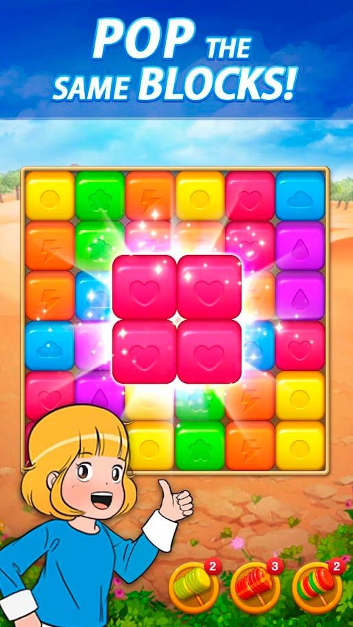 Простейшая игра, от которой вы получите удовольствие и приятные эмоции. Соединяйте простыми кликами по несколько блоков в одну линию. Это сделать будет очень просто, и вы получите удовольствие от визуальных эффектов списания линий. Взрывайте по несколько кубиков вместе, и тогда на игровом поле появится специальный блок со спецспособностями. Использовав его вы сможете увеличить счет своего баланса и поставите новый рекорд. Проверьте свои навыки в нескольких разнообразных режимах Block Pop Story : Yumi`s Cells, которые сочетают в себе несколько невероятных особенности. В процессе игры вы не получите никаких ограничений по ходам или времени. Главное следить за количеством имеющихся сердечек и не тратить их впустую. Благодаря мобильным функциям этого игрового процесса в нее можно будет наслаждаться даже в самолете без проблем.