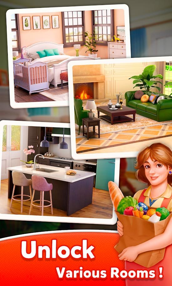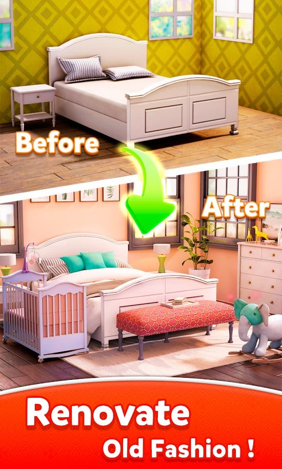 Не нужно много желания, чтобы начать участвовать в такой восхитительной головоломке. Здесь девочки и мальчики смогут на деле продемонстрировать все свои творческие способности и научатся многим вещам стиля или дизайна. В первую очередь пользователи получат доступ к обыкновенному серому домику, в котором не будет ничего. Ваша же задача, сделать удивительный интерьер, который понравился бы въезжающим в жилье людям. Так Home Fantasy - Dream Home Design Game становится отличным способом показать свои таланты творчества на деле и украсить дом необыкновенными изделиями. Выполняйте в процессе множество хитрых планов и используйте стратегию, чтобы быстрее разобраться с головоломками три в ряд. Все что нужно делать, это просто искать соответствия и уже с них подбирать одинаковые ряды.