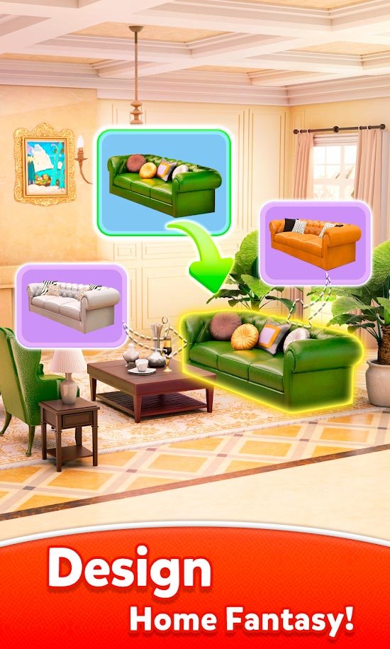 Home Fantasy - Dream Home Design Game – это обновленная головоломка, в которой сочетаются вполне оригинальные моменты. Пользователи будут собирать три в ряд и смогут таким образом построить красивый домик.