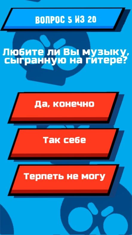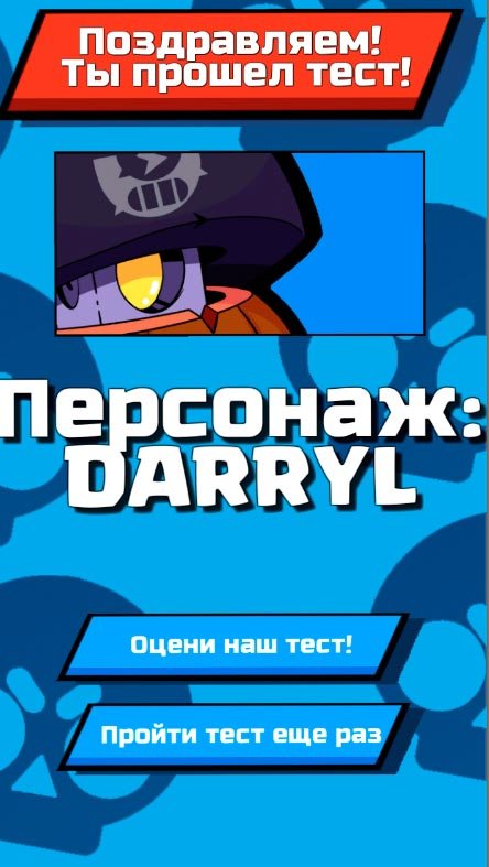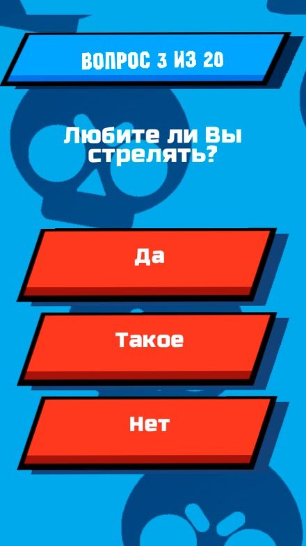 Поклонники Supercell настолько сильно полюбили стрелялку, что решили создать по ней увлекательную викторину и у них это получилось. Теперь каждый пользователь абсолютно бесплатно может попытаться ответить на сотни вопросов, связанных с Браул Старс, и в результате получить предположения схожести с одним из героев. Очень удобно разработчики сделали навигацию, чтобы пользователи могли спокойной кликать по нужным вариантам и легко выбирали ответы. Десятки оригинальных и забавных вопросов подготовлены для тех, кто хочет узнать главные ответы на то, на кого ты можешь быть похожим из легендарной стрелялки. Получай ответ и картинку к нему. Позови своих приятелей тоже сыграть в Кто ты из Brawl Stars? И сможете поделиться результатами. Поверь, тебе будет интересно узнать о друге этот момент.