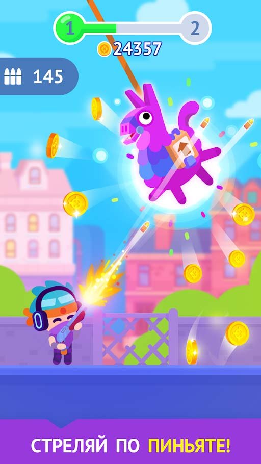 - Стреляйте из улучшенных пушек по Пиньятам;