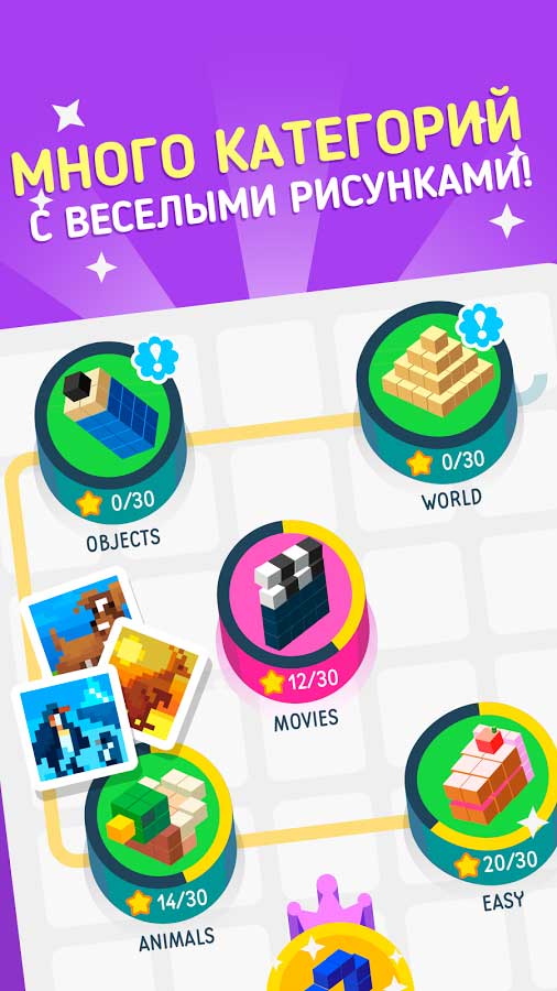 Вскоре даже новичок самостоятельно сможет удивить опытного пользователя своими познаниями и мастерством в головоломках. Больше сотни оригинальных заданий будет доступно для прохождения, и все они модулированы в разных уровнях сложности. Наслаждайтесь временем, которое провели за решением этих головоломок и открывайте новые иллюстрации. Поделитесь достижениями с друзьями и завоюйте репутацию лучшего и самого умного решателя. Вам не нужно искать способ сохранить прогресс, ведь он остается в памяти в автоматическом режиме.
