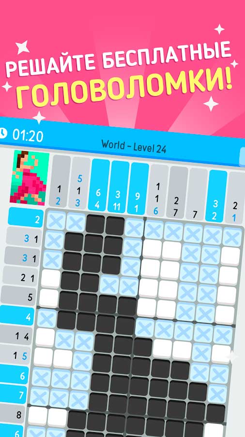Вместе с этим уникальным игровым процессом вы легко сможете получить удовольствие и натренировать свою интеллектуальную память. Когда сможете скачать Logic Pic – Головоломка на андроид используйте свои логические способности в целенаправленном движении. Это отличный способ не просто провести свое время весело, но и завоевать массу ценных трофеев. Игрок должен будет решить огромное количество разнообразных заданий и головоломок, а также открыть красивые иллюстрации, сделанные в пиксельном изображении. Попробуйте собрать в своей коллекции как можно больше таких картинок, которые никогда не перестанут приносить удовольствие и радовать ваш взгляд.