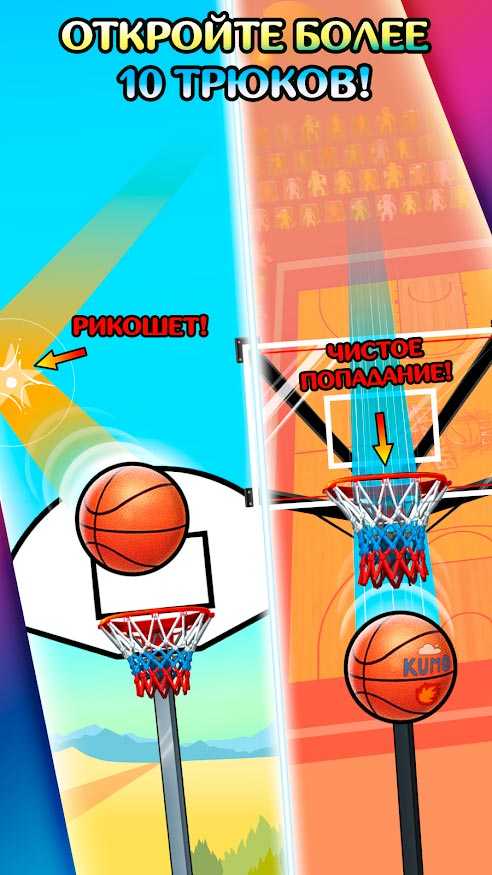 Баскетбол это основная часть того, что ждет вас в этом приложении. Кроме этого Basket Fall подарит пользователям возможность поиграть и другие традиционные спортивные соревнования. Касайтесь экрана и выполняйте точные броски, чтобы выбить максимум очков на уровне и продвинуться по системе рейтинга среди пользователей. Главное не ронять мяч на пол и тогда ваши достижения получат вознаграждение. Только если попадать в кольцо можно выбить массу баллов. Знаменитые разработчики продолжают радовать пользователей веселыми симуляторами и аркадами спортивного жанра. Здесь пользователи смогут отыскать множество интересных и забавных персонажей, которые желают участвовать в соревнованиях. Можно пользоваться усилителями и магнитами, чтобы продвинуться дальше, а также вас ожидают веселые сценарии, пройти которые будет весьма интересно.