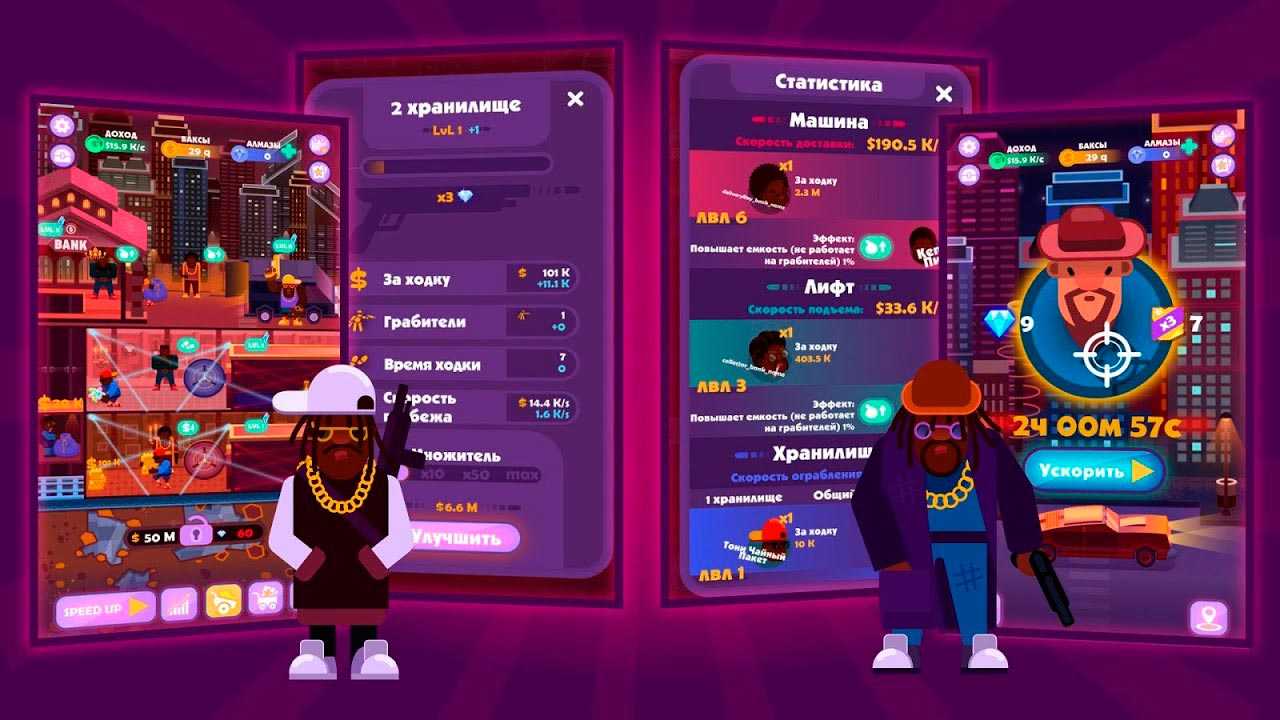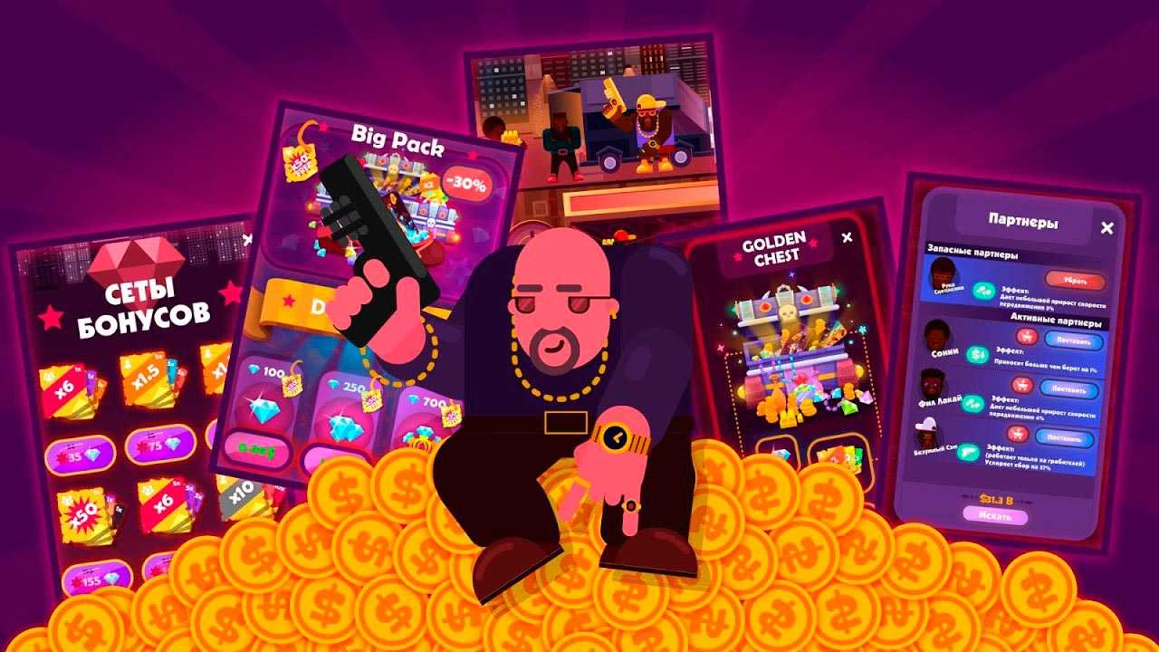 Idle Mafia Tycoon – игра, в которой просто нужно жать по экрану и таким способом поднимать свою собственную мафию. Управляйте районами, бандитами и выбирайте любые не честные пути заработка.