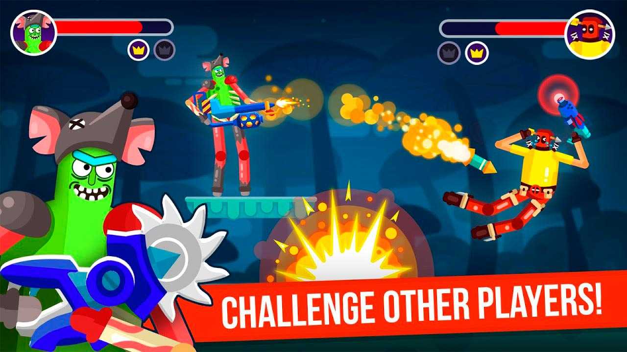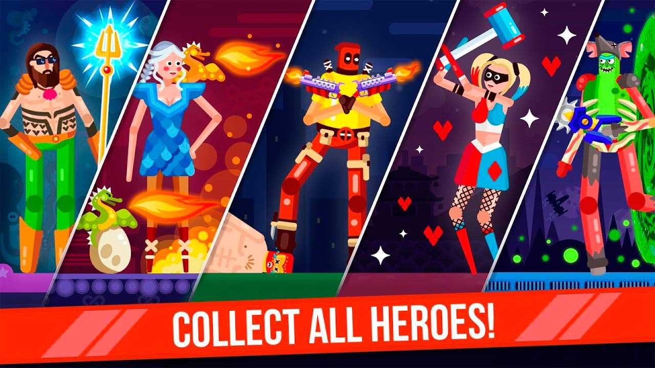 В Ragdoll Rage: Heroes Arena можно играть как против ботов, чтобы отточить свои навыки, так и против друзей или незнакомых игроков по всему миру. Собирайте бонусы и оружие, которое выпадает на арене, улучшайте свои характеристики и выполняйте разнообразные достижения.