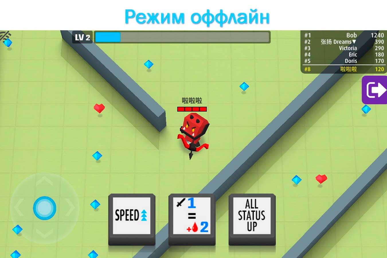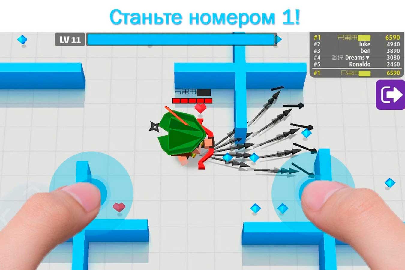 Игры в стиле .io стали популярными и привлекают к себе внимание миллионов людей. Если вы являетесь любителем подобного стиля, то обязательно нужно скачать Стрела.io на андроид и попробовать поиграть самостоятельно. Все противостояния разворачиваются в реальном времени, то есть мы сражаемся с настоящими людьми, такими же точно, как и мы сами. Каждый из персонажей обладает своими уникальными стрелами. Благодаря им можно уничтожить любого врага, оказавшегося на пути. Повышайте собственные навыки, добивайтесь следующего уровня и получайте новые навыки. Игра имеет кучу изменений, но к каждому из них нужно время, чтобы привыкнуть.Хотелось бы обратить внимание, что возможность скачать Стрела.io на андроид является бесплатной. Игра радует нас ассортиментом героев. Пиксельная графика очень интересна и к ней еще не все геймеры смогли привыкнуть. Заходите в режим мультиплеера, устраивайте схватки с настоящими людьми и не позволяйте собственным пальцам просто так останавливаться на достигнутых результатах. Нужно делать все возможное для того, чтобы побить прошлый свой рекорд.