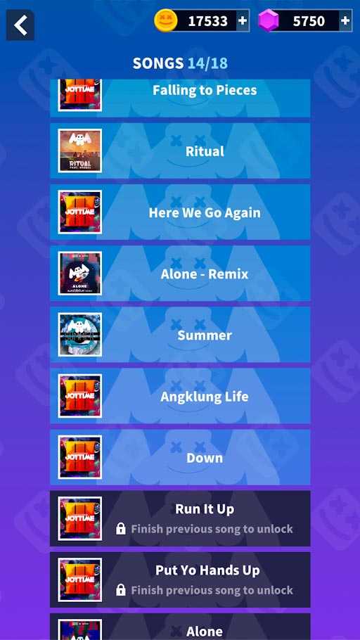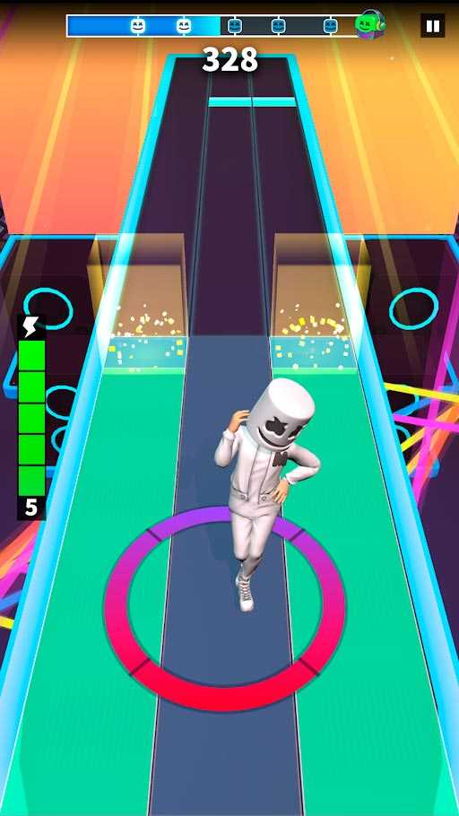 Начинайте собирать огромное количество разных персонажей, с которыми пройдете через многоуровневую историю и получите шанс выиграть шикарные призы. У вас может оказаться самая крутая музыкальная группа, способная сокрушить все плитки с Marshmello Music Dance. Главное чем нужно обладать в этой игре, внимательность и скорость реакции, а также музыкальный слух. Кроме того, есть режим, в котором можно самому написать песню.