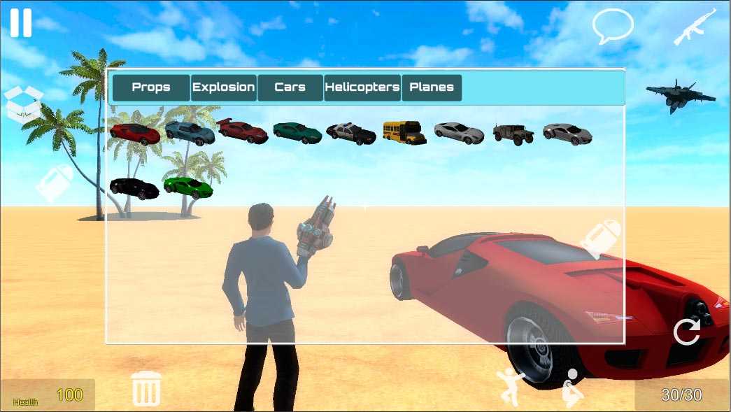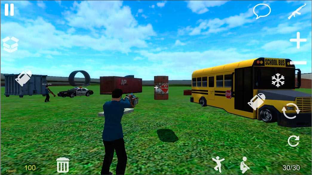 Sandbox Mod 2 – глобальная игра с пользователями по всему миру. Здесь игрокам будет доступна полная свобода действий. Можете расставлять любые объекты, пользоваться транспортом и оружием.