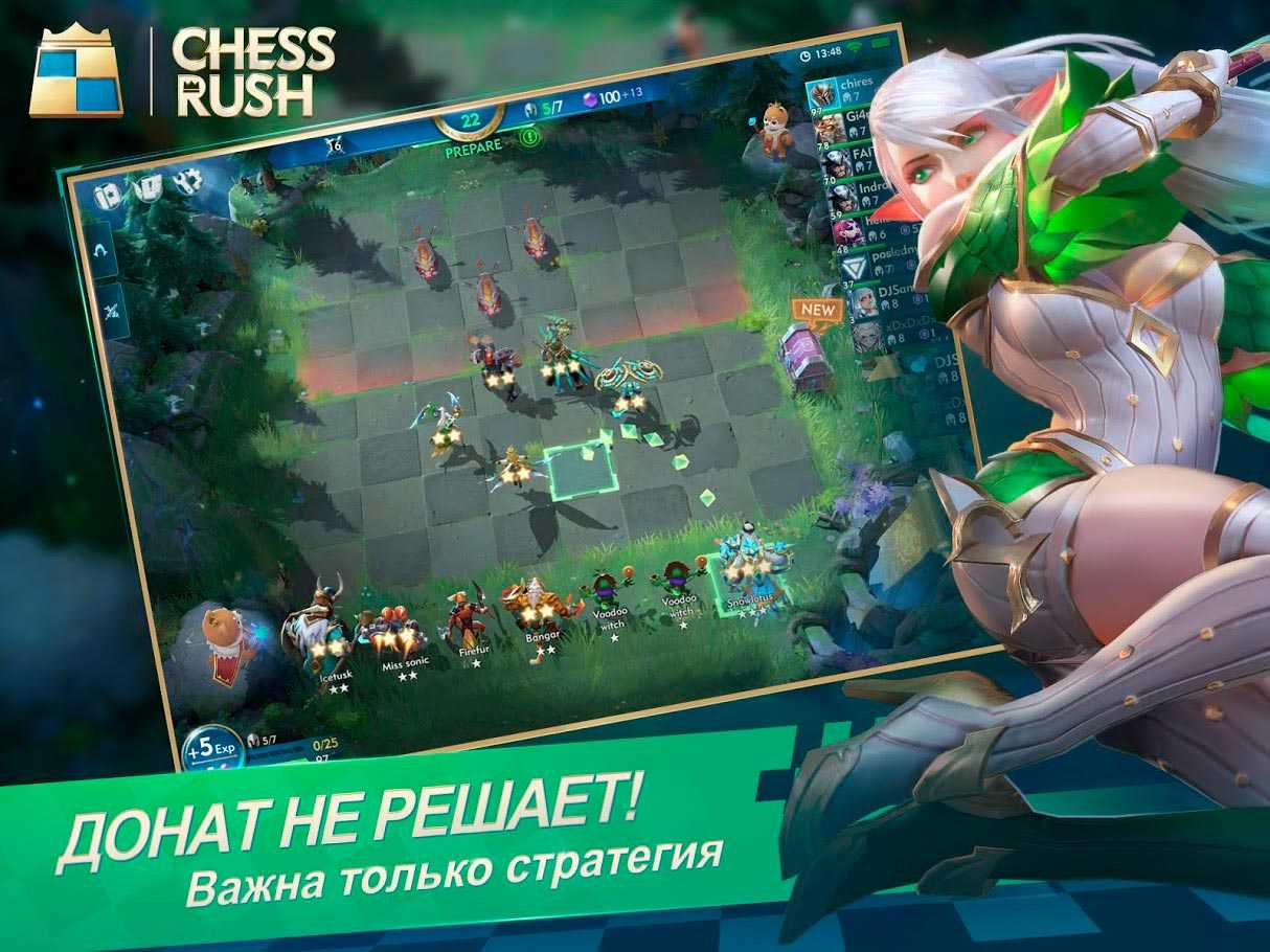 Сейчас огромной популярностью обладают стратегии про шахматные бои с фантастическими героями или монстрами. Эта идеально подходит для начала пути восхождения к вершине. Сразу 7 игроков из разных концов мира могут столкнуться на одной карте в Chess Rush. Существует уже больше 50-ти персонажей и будет еще больше. Проводите грамотные атаки в 10-ти минутных поединках и наслаждайтесь великолепным качеством трехмерной графики.