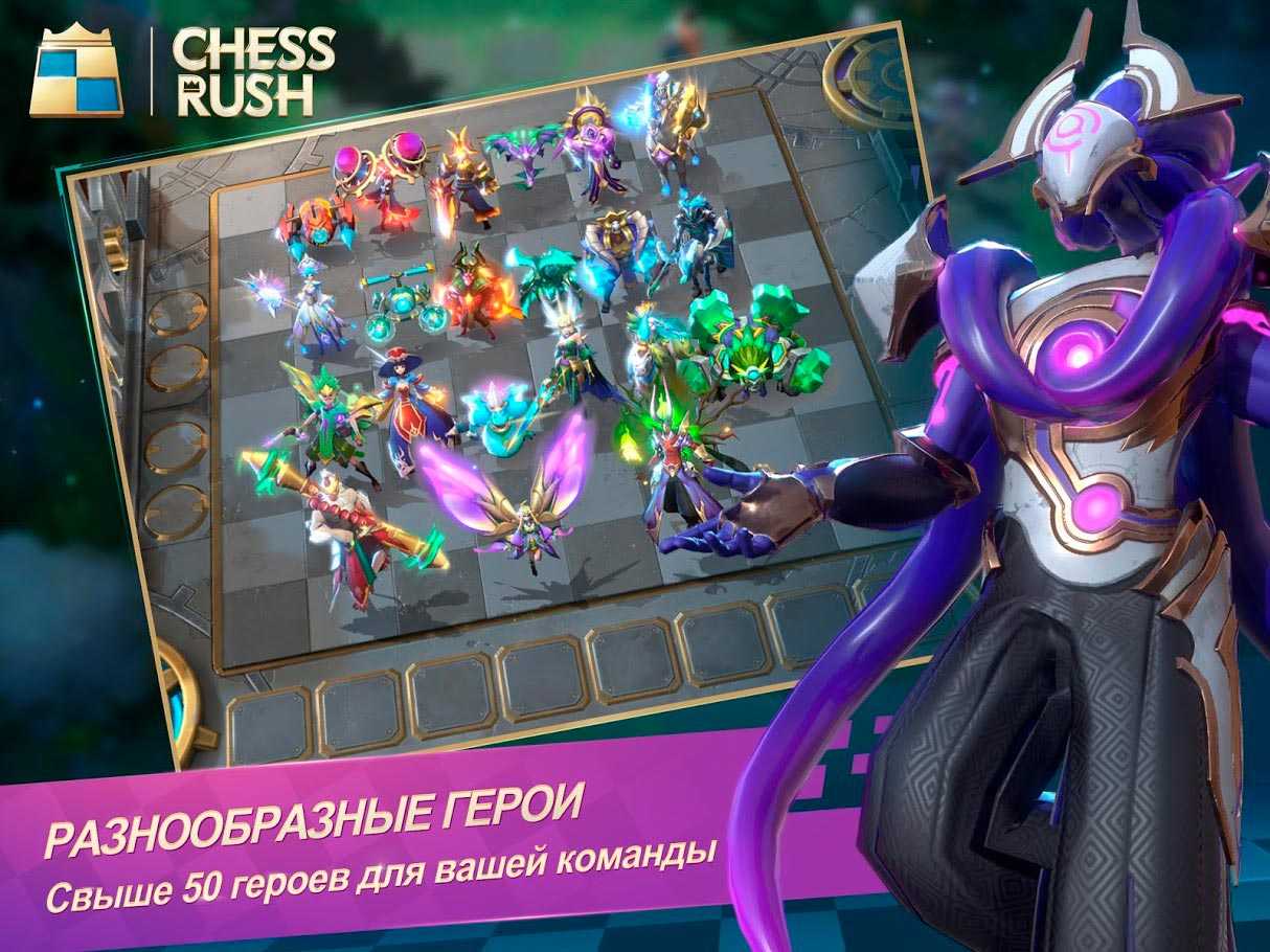 Chess Rush – шахматная фантастическая стратегия с разными режимами. Вы должны пользоваться активными героями и успеть завоевать трофеи всего за 10 минут каждого противостояния.