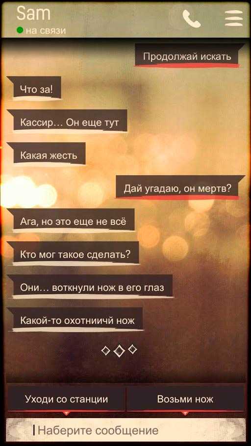 DEAD CITY текстовый квест – оригинальный квест, где вам предстоит пережить захватывающие события, помогая человеку, попавшему в серьезную переделку. У вас есть только телефон с мессенджером. С вами связался незнакомый человек по имени Сэм, и единственное, что вы сможете делать – советовать, как поступить в той или иной ситуации, отвечая на его сообщения.