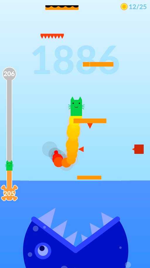 В этой игре вас ждет множество уровней, сложность которых постепенно возрастает. Встретили огромного кровожадного босса? Прыгайте быстрее, это единственный способ спастись. Ставьте новые рекорды, чтобы попасть на верхние строчки таблицы рейтингов и попробуйте разблокировать всех очаровательных котят.