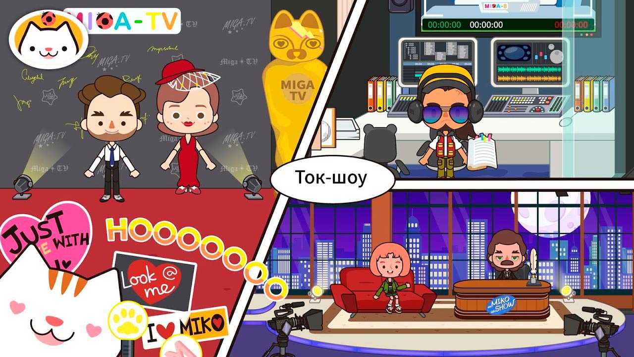 Miga Город:ТВ шоу – красочная и увлекательная игра, призванная познакомить детей с профессией телеведущего. Ваш ребенок сможет провести собственное шоу в роскошно обставленном доме или в телестудии, выпустить программу новостей и побыть в роли корреспондента, берущего интервью у случайных прохожих.