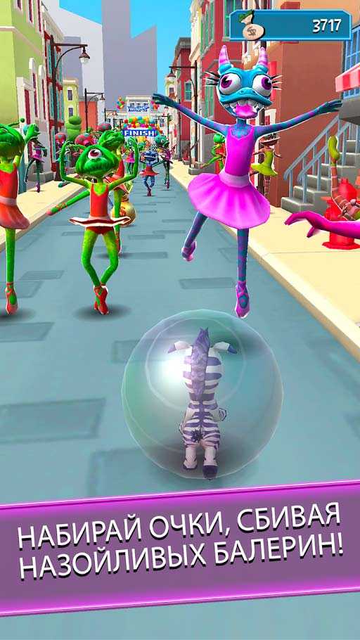 Балерина – смешная гоночная игра, в которой вы будете управлять очаровательной зеброй. Избегайте различные препятствия и сбивайте балерин, чтобы пополнить ваш запас энергии. Прыгайте на трамплинах, используйте различные усилители и оставьте всех назойливых соперников позади, придя к финишу первым.