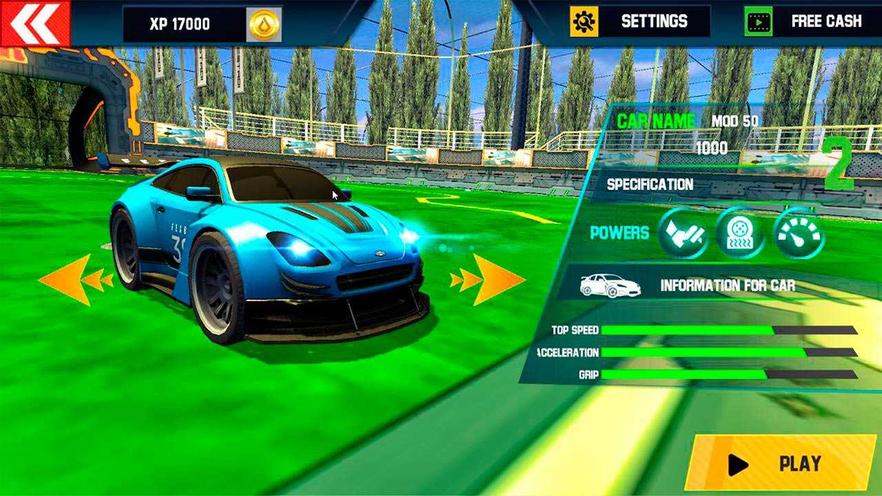 В игре доступно несколько разных стадионов и три режима: практика для тренировки, свободная игра и карьера, где вам предстоит играть с противниками, которые становятся все сильнее. Выигрывая в матчах, вы сможете зарабатывать монеты, которые можно потратить на новые автомобили.