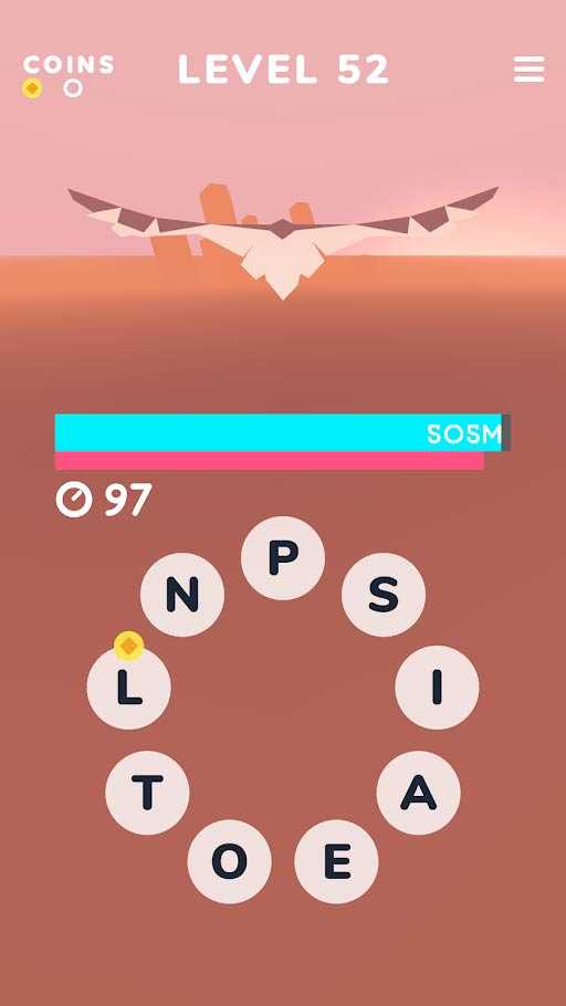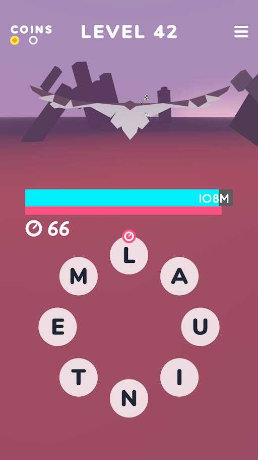Word Wings – это удивительное приложение для ваших мобильных гаджетов, позволяющее всем желающим почувствовать себя птицей. Составляйте слова и летите как можно дальше и выше. С каждым новым словом взмахи крыльев будут все энергичнее и быстрее. Открывайте новых птиц и продолжайте свой полет. С таким уникальным способом потренировать свой мозг и одновременно расслабиться под отличный саундтрек можно провести несколько часов за приятной игрой. Тут легко погрузиться в геймплей с первых минут, прочувствовать отменную атмосферу проекта и просто получить массу положительных эмоций.