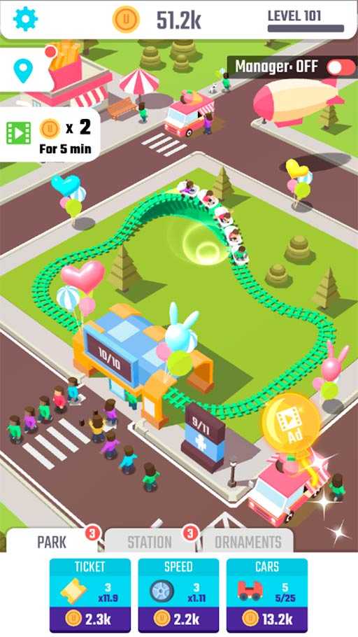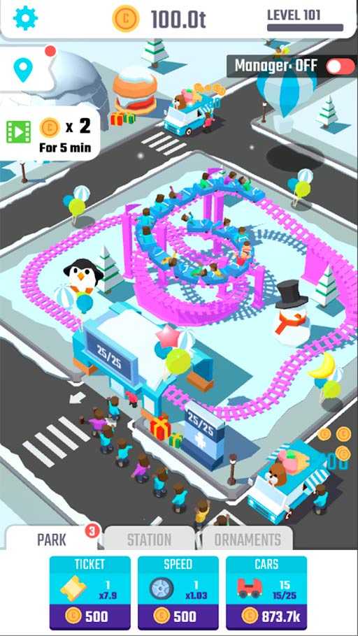 Idle Roller Coaster – это твой собственный виртуальный парк развлечений. Создай место, где можно отлично повеселиться, обустрой его всем необходимым и приведи к процветанию.